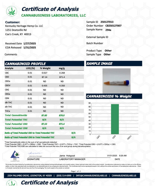We take pride in our organic farming practices. With a commitment to using sustainable methods, we exclusively source materials that are certified 100% USDA organic, meaning we don’t use harmful chemicals or pesticides in our process. The result? CBD products with an ingredient list that aligns with nature's wisdom, helping to ensure your well-being and the planet's health.